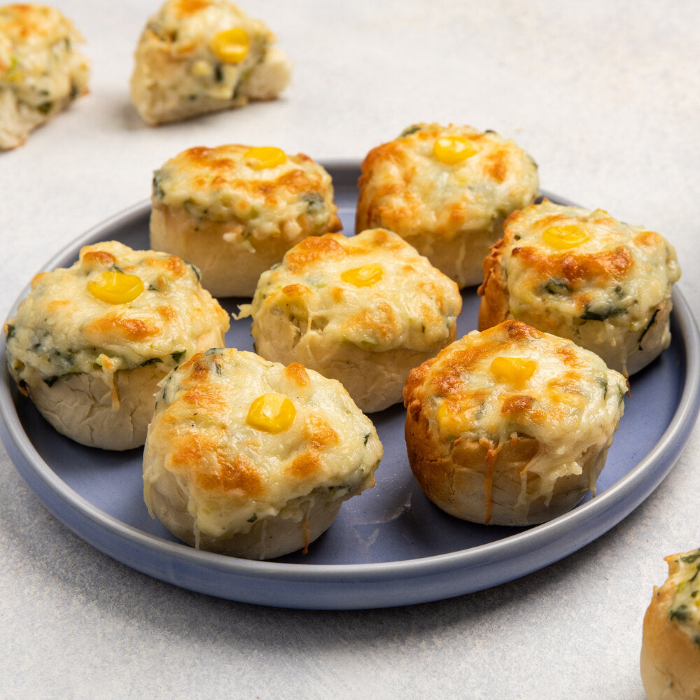 Mini buns stuffed with exotic vegetables in a cheesy sauce. Instructions: Bake in the oven and enjoy!