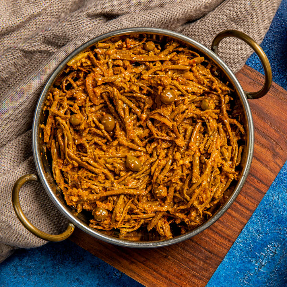 Dried Ker berries and Sangri beans cooked in our homemade achari masala.